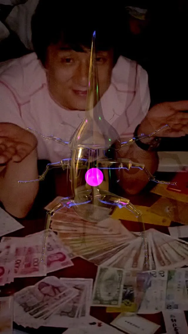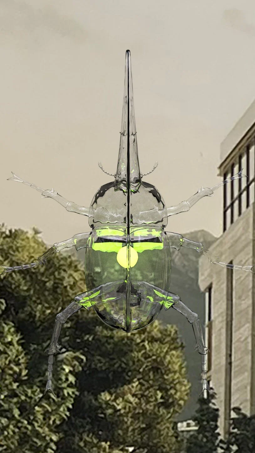 El diseño se crea a traves de modelos 3D en softwares que replican con precision un espacio real dentro un entorno digital y hace que los materiales del modelo (vidrio, cromo, luz) reaccionen visualmente al ambiente real. Como resultado, un sticker que crea la ilusión de estar interactuando con el ambiente real donde es pegado, cuestionando la línea de lo tangible con lo virtual.